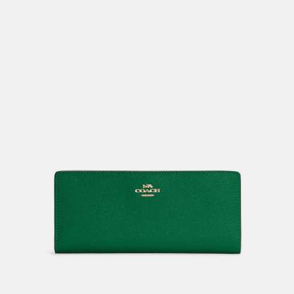 Crossgrain leather 12 credit card slots Full-length bill compartments Snap closure Outside zip pocket 7 1/2 (L) x 3 1/2 (H) x 1/2 (W) Style No. C3440 | Outlet Slim Wallet - Brown