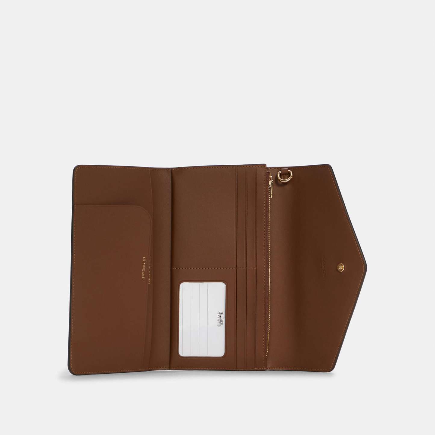 Signature coated canvas and smooth leather Five credit card slots ID window Inside zip and open pockets Snap closure Outside zip coin pocket Detachable wrist strap 8 1/4 (L) x 4 1/2 (H) Style No. C7615 | Outlet Travel Envelope Wallet In Blocked Signature Canvas - Beige